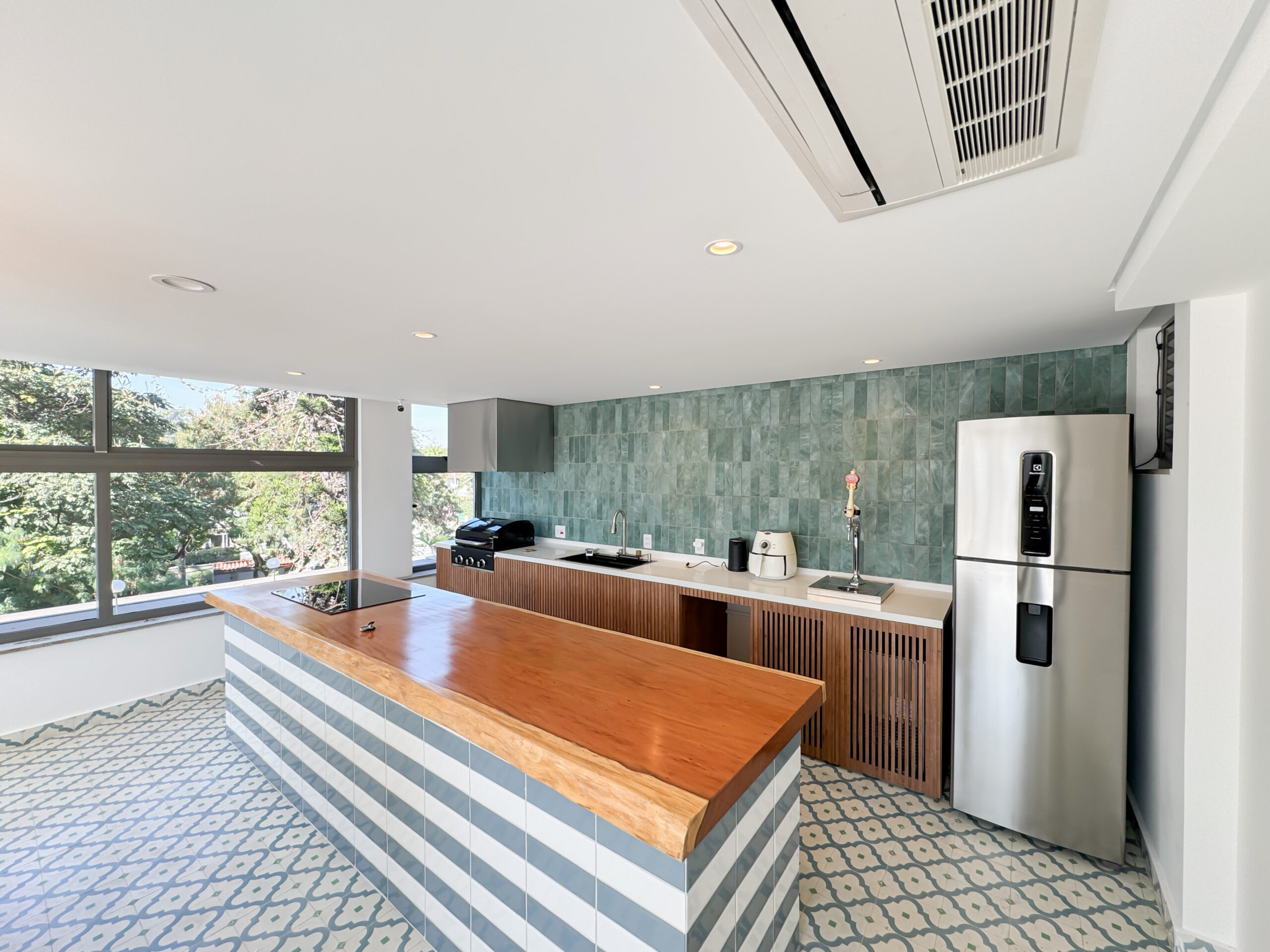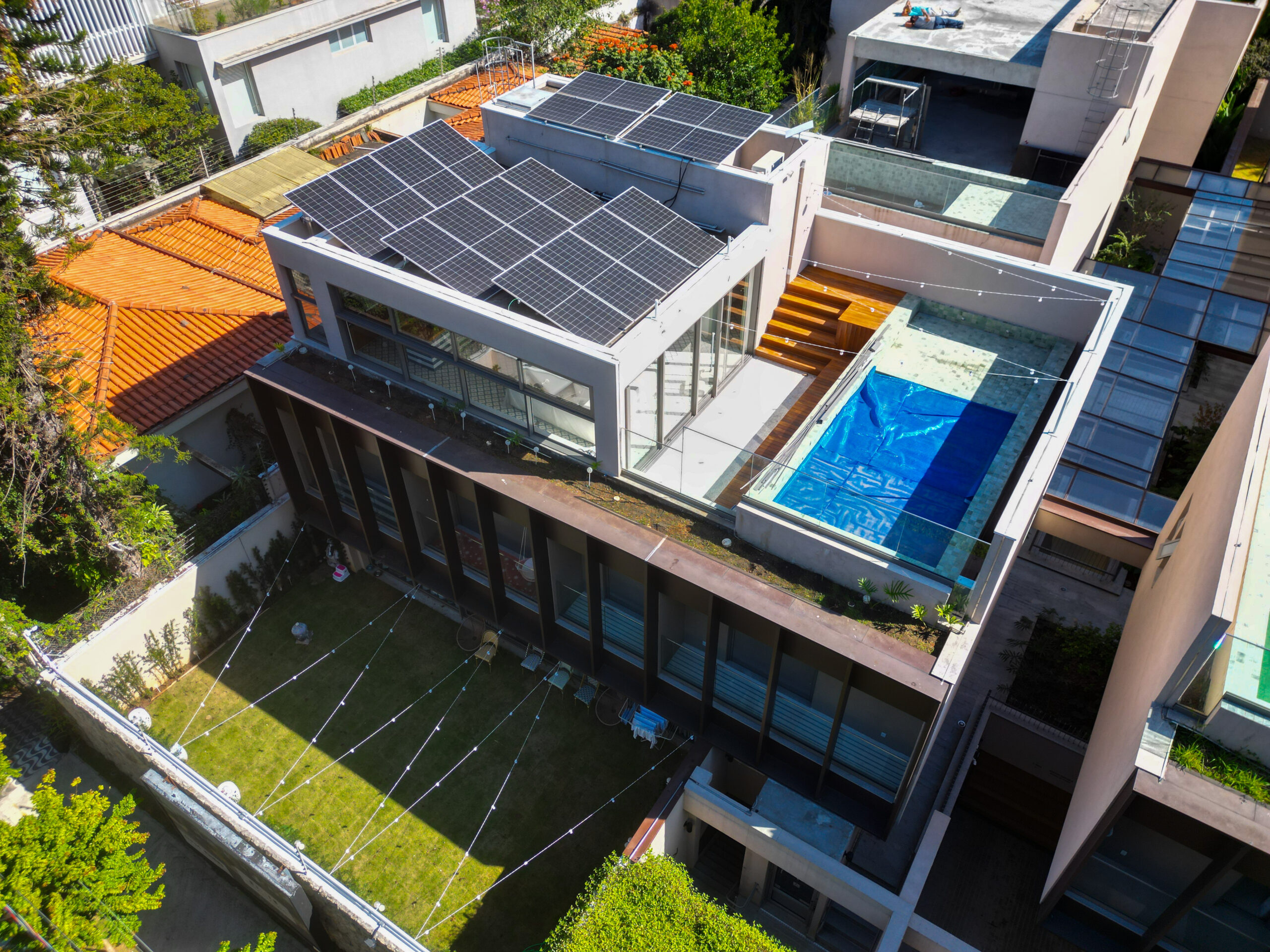 O ponto alto do projeto é a cobertura, transformada em uma área gourmet exclusiva e um verdadeiro oásis urbano. Com uma piscina privativa e uma vista espetacular, o espaço foi desenhado para ser um refúgio de lazer e sofisticação, garantindo total privacidade.