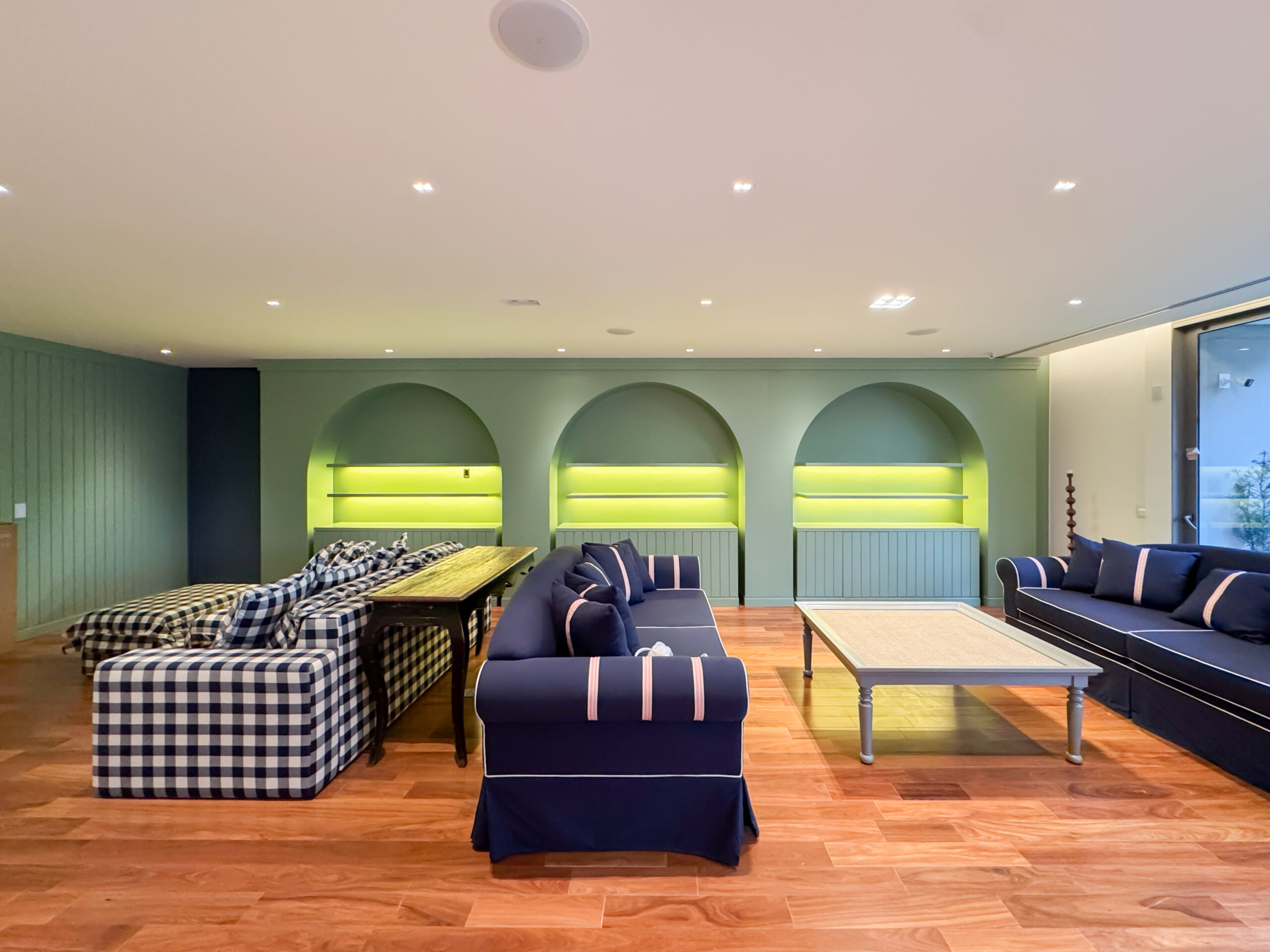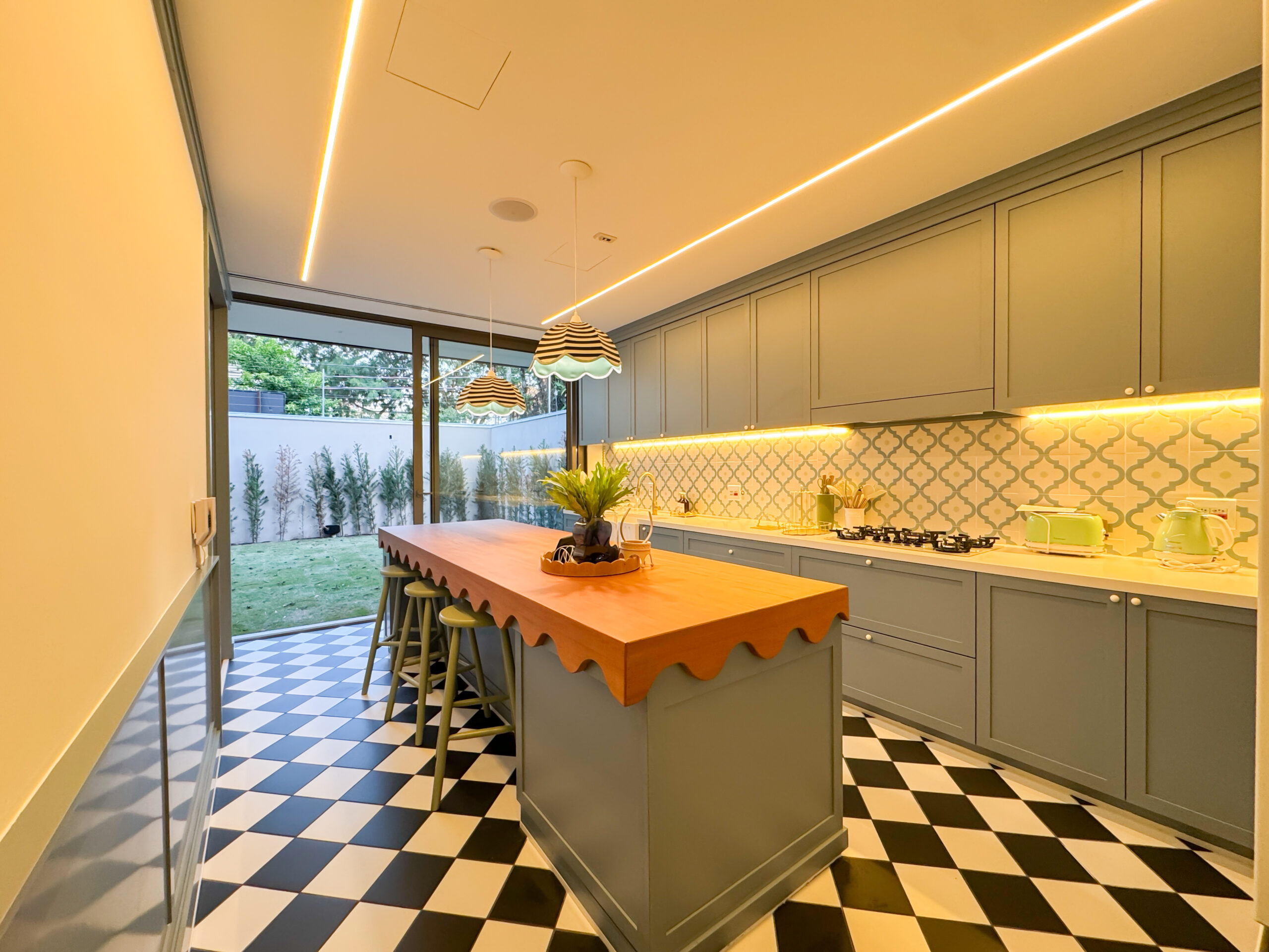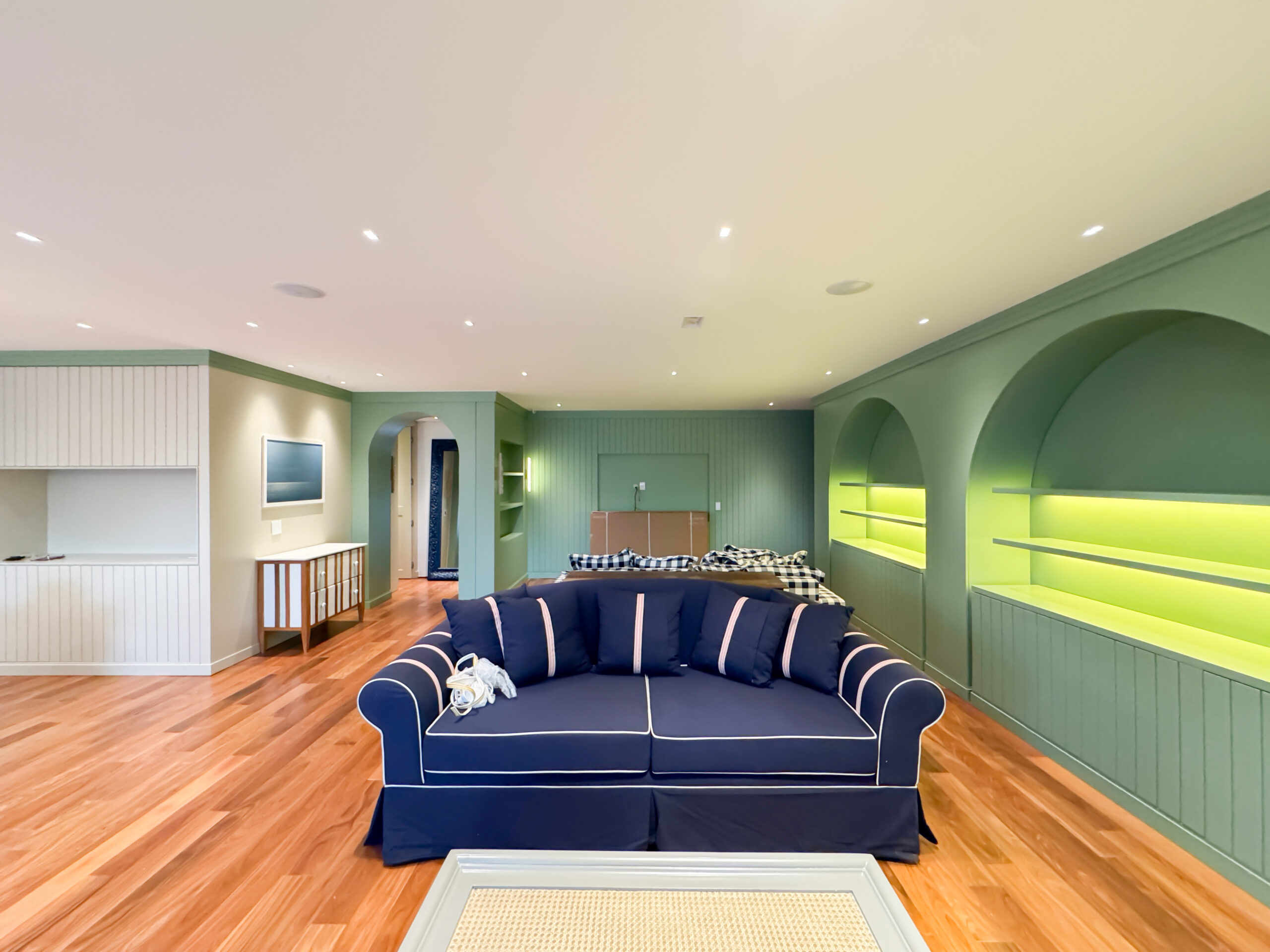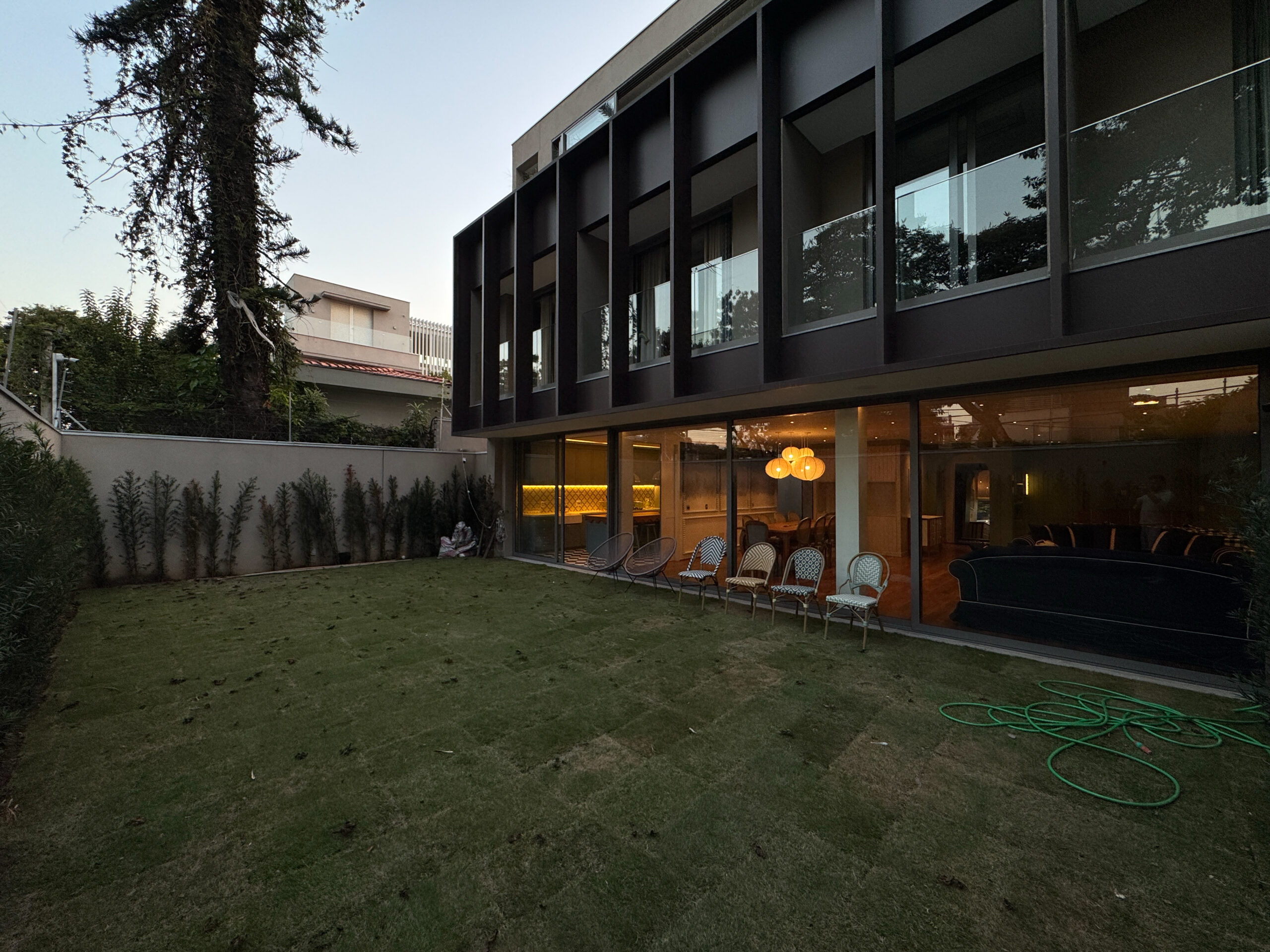 O trabalho abrangeu os quatro pavimentos da residência, desde a garagem subterrânea até a cobertura. Implementamos um sofisticado projeto de interiores com marcenaria planejada em todos os ambientes e um sistema de automação residencial de última geração, que proporciona controle total de iluminação, climatização e áudio com máximo conforto e praticidade.